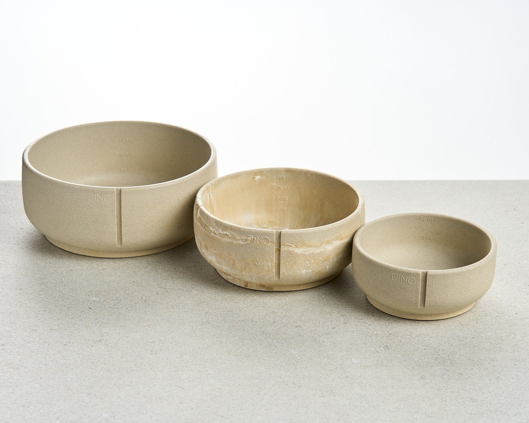 Pino Sandstone® is made primarily from natural sand, with only a small percentage of natural pigments and a structural component. The material is uniquely developed by us. It's also a conscious, environmentally friendly choice. By working with natural raw materials, we reduce our ecological footprint and create bowls that truly last.