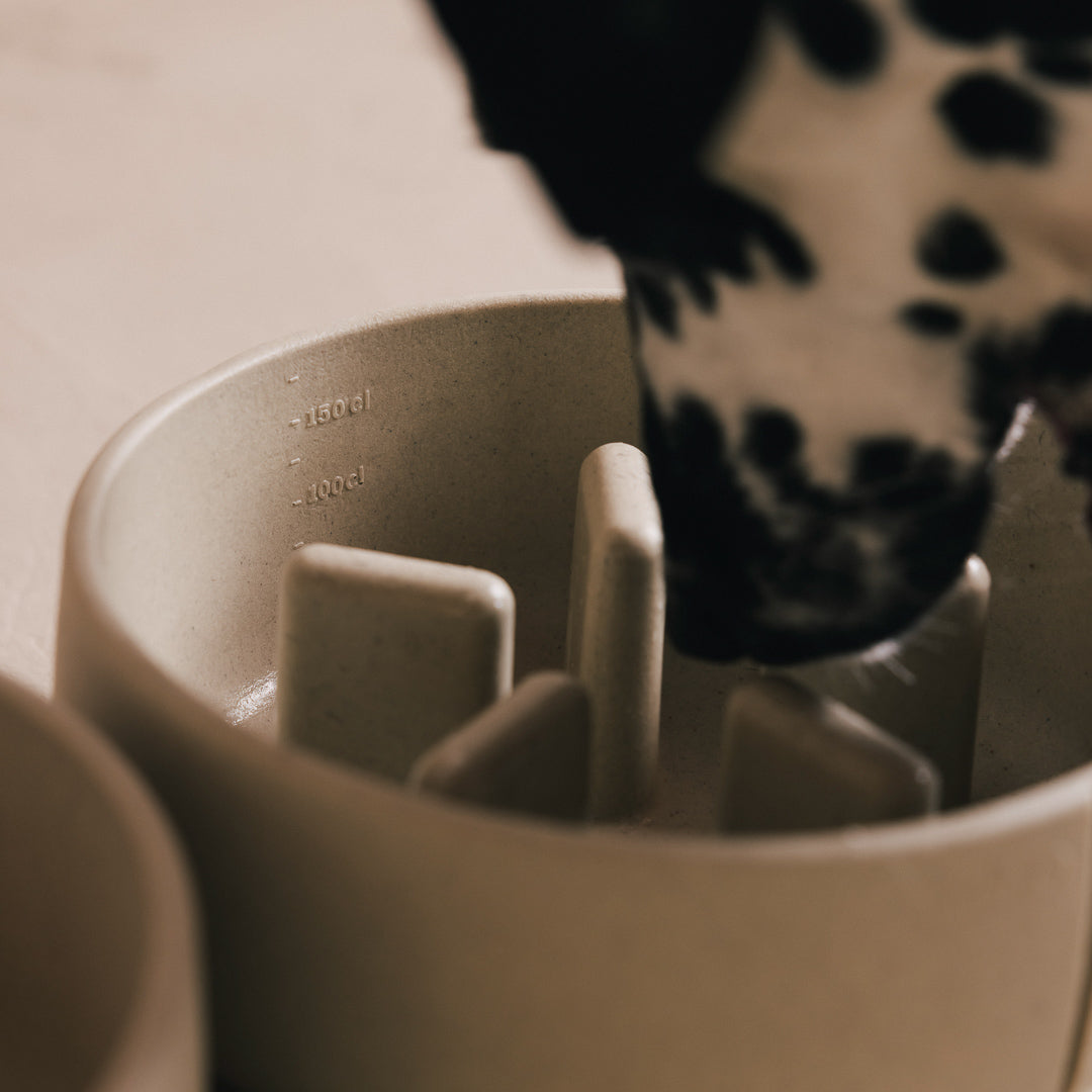 Cats and dogs deserve to enjoy their meals like we do, too, because the way they eat has a direct impact on their well-being. That is why PINO creates feeding bowls that take their comfort into account, tailored to their physique, behavior and eating habits - made of sandstone, so that the bowl won't shift, stays fresh smelling and can stand up to rough handling.